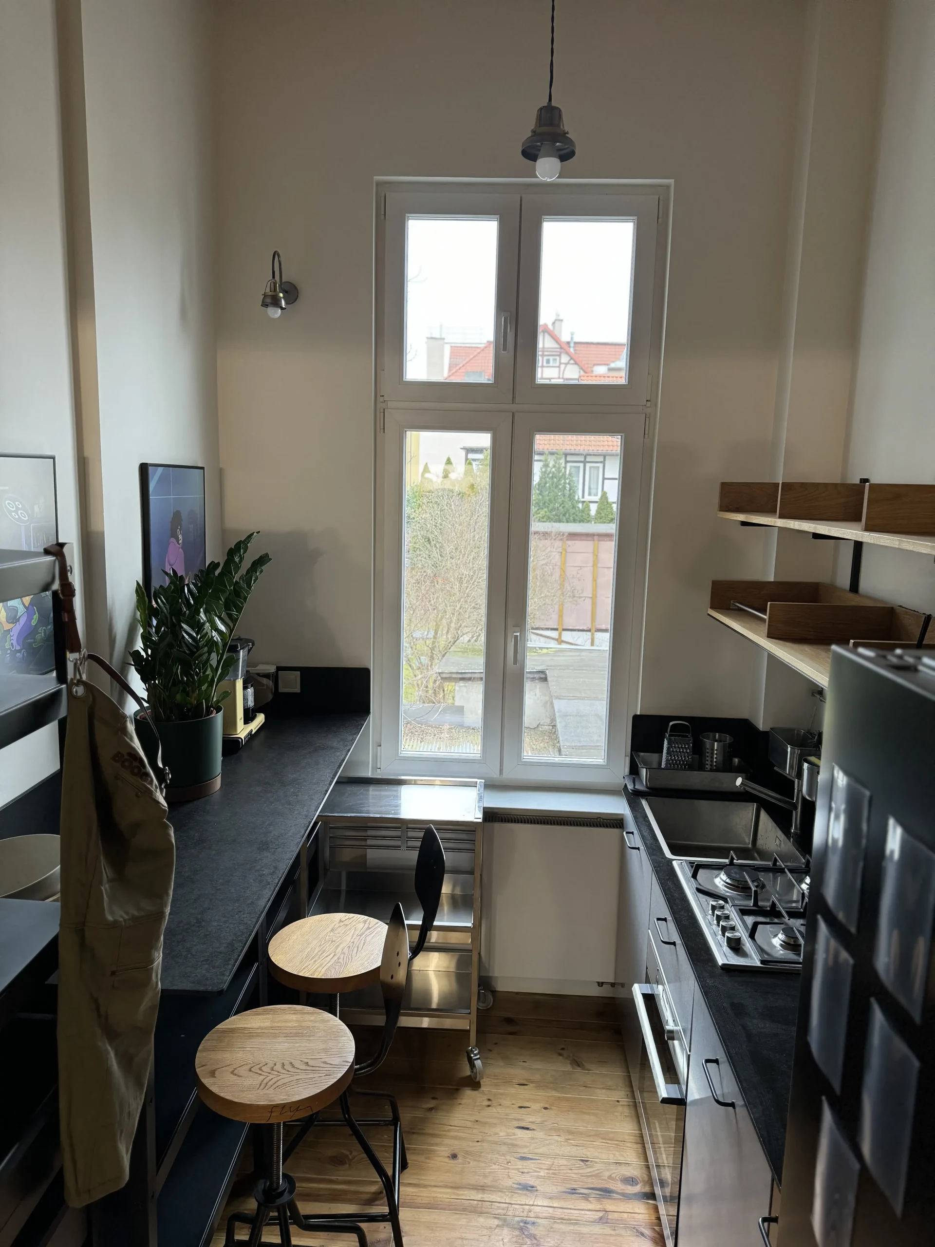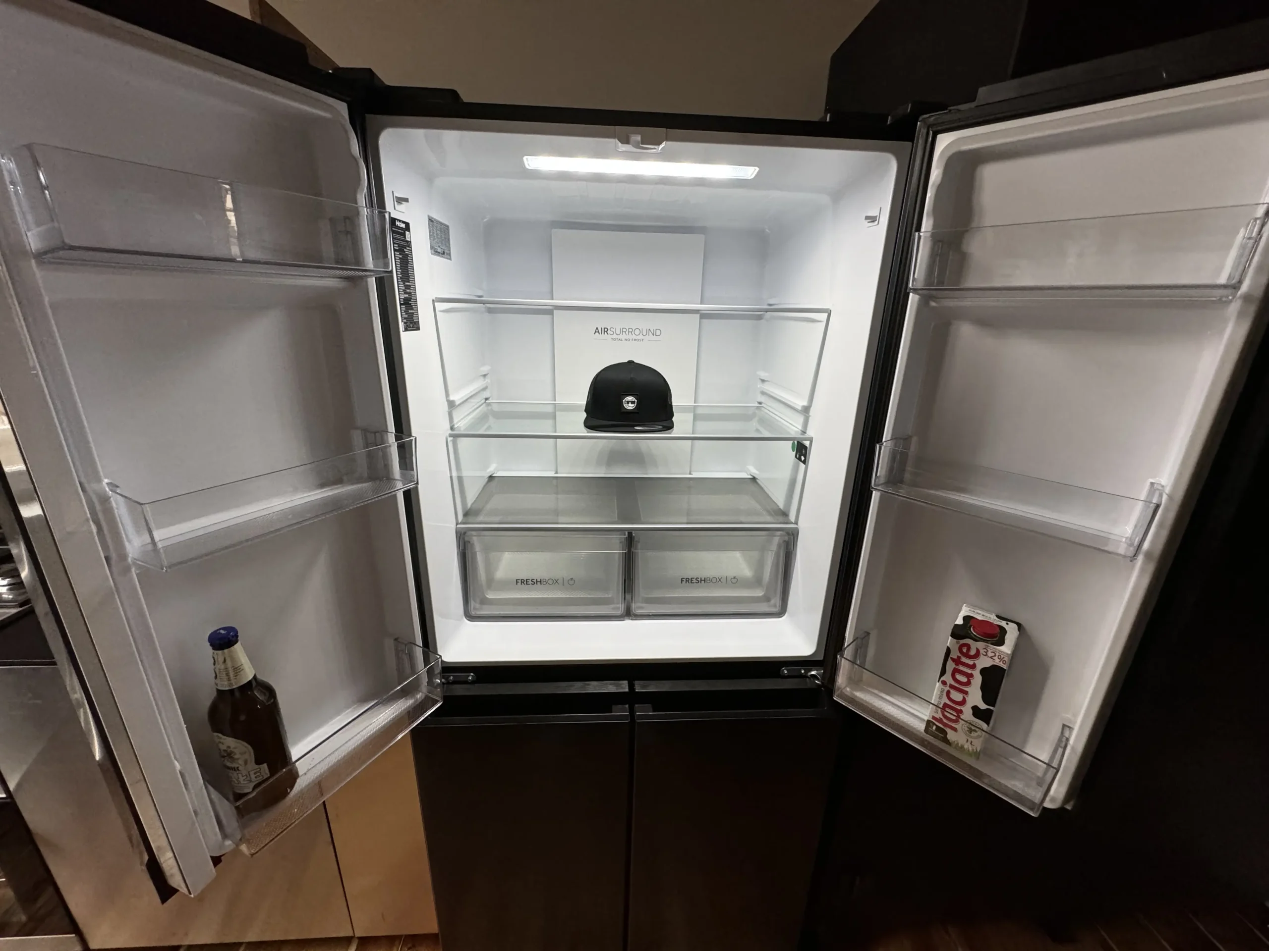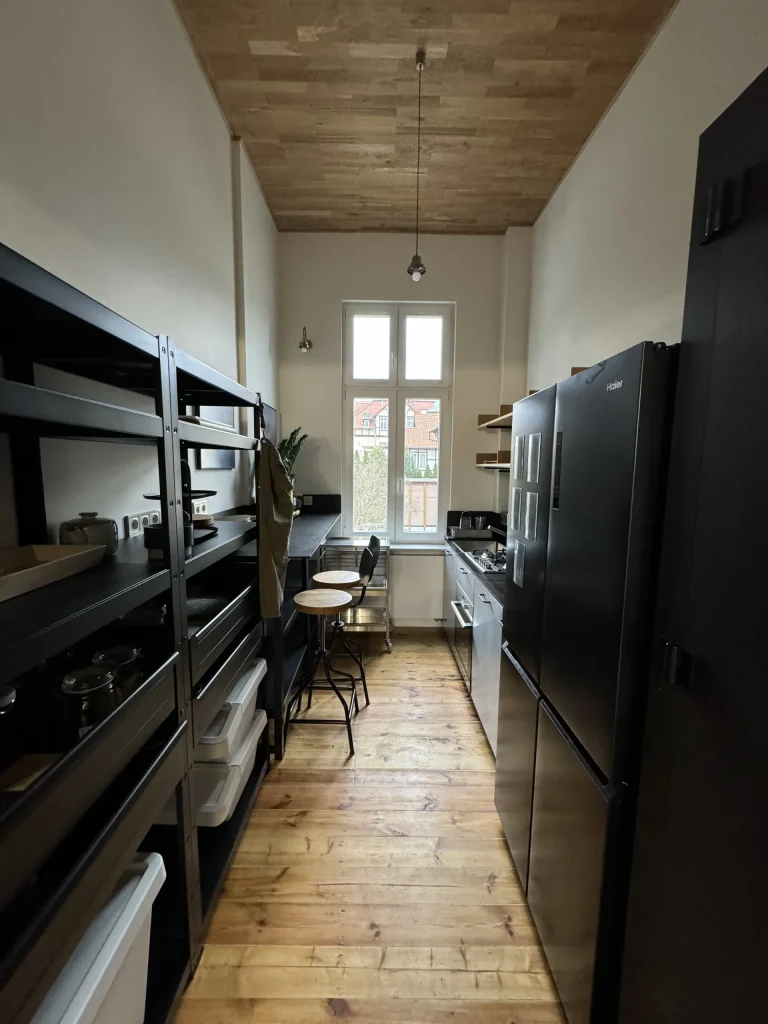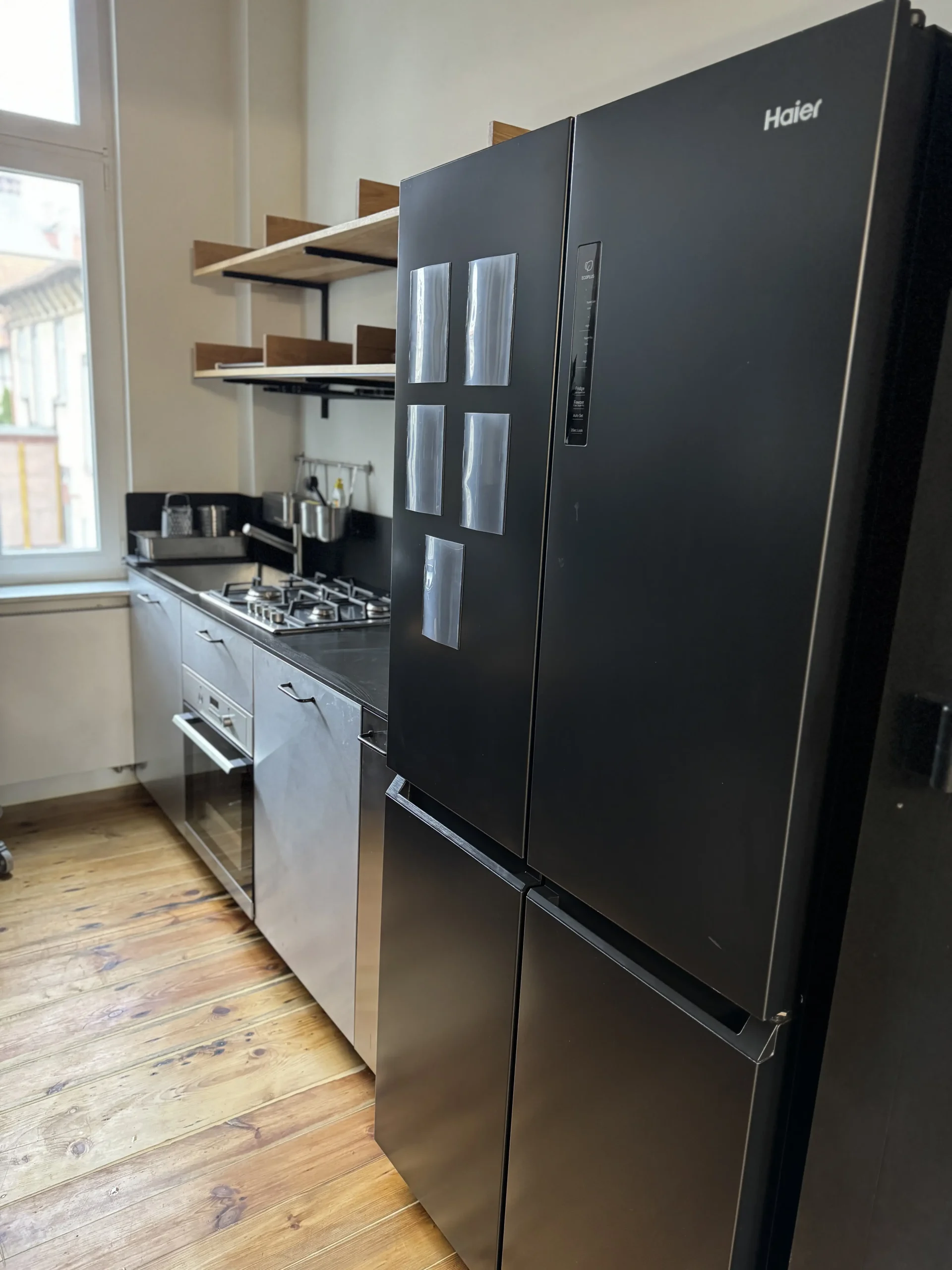 Fully furnished kitchen with a large fridge