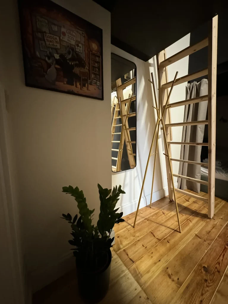 Big bed (120cm wide), with a privacy curtain and extras